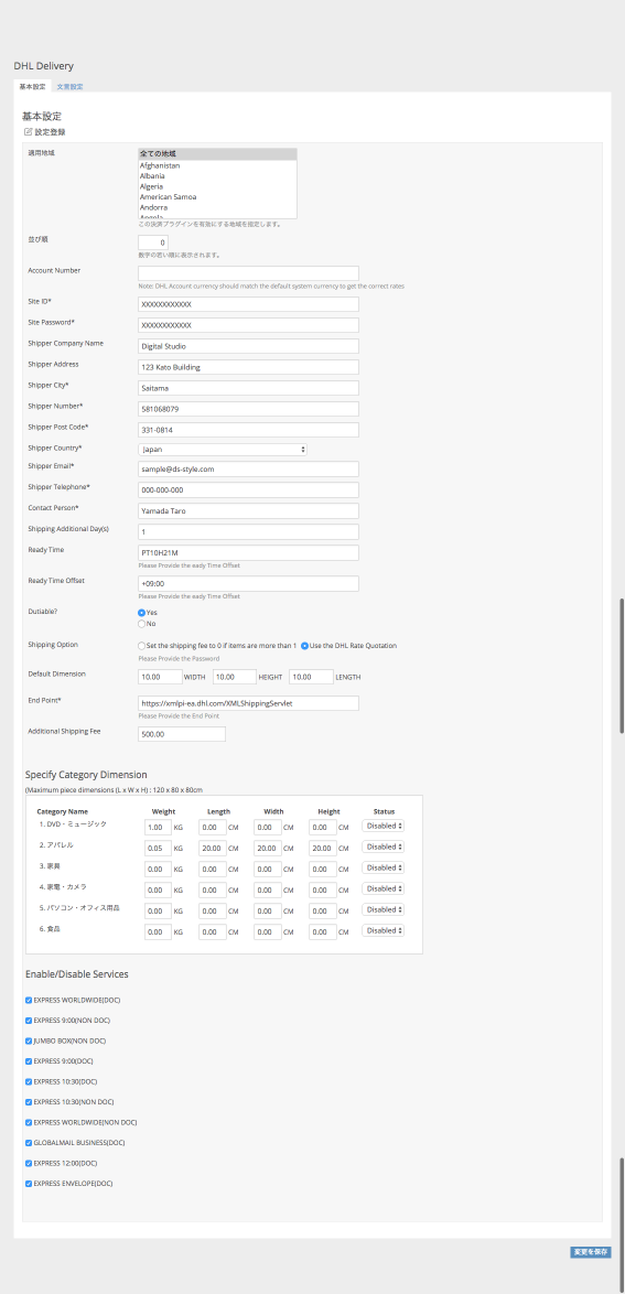 DHL 国際配送プラグイン