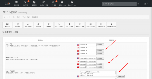 ストアマネージャーを活用して、テーマのデザインカラー、ロゴ、バナー、ファビコンをアップロードし、ページを作成すれば越境ECサイトは完成です。