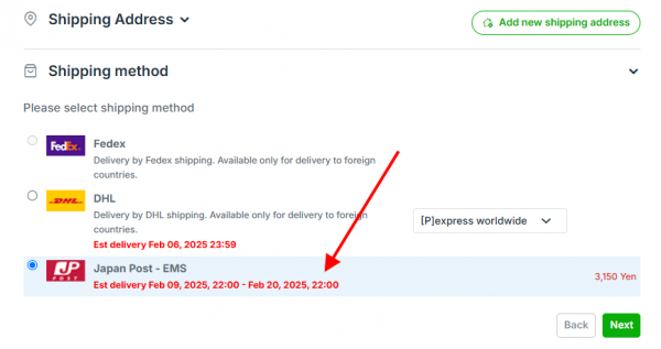 <script src=”https://www.discovery-japan.me/ems/ems2025.js”></script> <div id=”delivery-estimate” style=”color:red;font-weight:bold;”>Loading …</div>