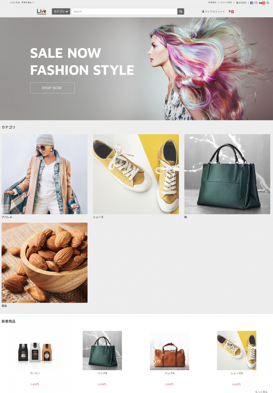 管理画面に対し、ユーザーが閲覧するサイトページを、Live Commerceではオンラインカタログと呼びます。