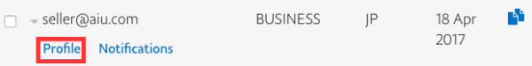 売り手アカウントのEmail Addressをクリックし、Profileをクリックします。