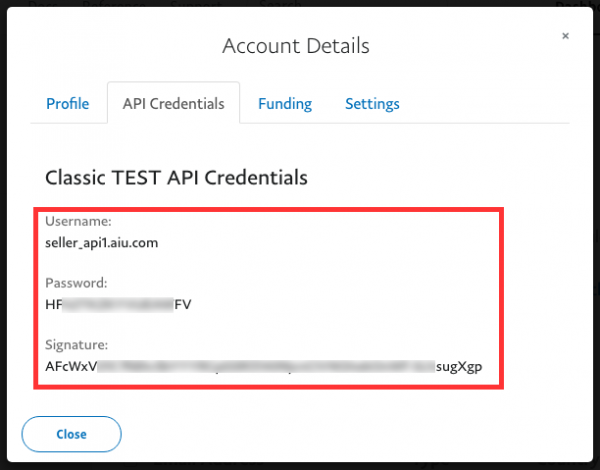 API Credentialsタブを開き、API情報(Username/Password/Signature)をメモしておきます。